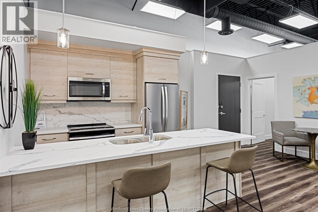 A spectacular 2 bed, 2 bath unit by Valente Development with all the upgraded conveniences you have come to expect from this builder. One of the best locations in LaSalle for shopping, doctors, banks, etc., dog park, walking trails and parks. Open plan design, kitchen with quartz countertops, undermount lighting, pantry, in suite laundry. Spacious p/b with tray ceiling, ensuite with sparkling glass and tile walk in shower, main bathroom with tub. Luxury upgraded vinyl plank flooring throughout except for bathrooms which porcelain floor. Linen closet. Garbage chute, social/party room for tenants use with kitchenette and rest room. Unassigned surface parking included. Garages to lease. On Site Manager, service department. Includes 5 S/S appliances. All heating equipment and hot water tank not subject to any rental fees. 1 year lease. Proof of employment and credit check required with application. Tenant pays utilities, water, gas, hydro. All Showings by appointment. (id:4555)